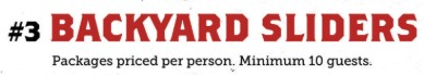 Substitute 1 slider meat for Texas Beef Brisket for $1/person. Add a Rib to any special for just $2.50 per bone. Disposable chafers available for $12.50/chafer.